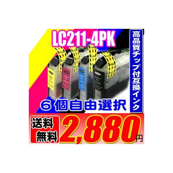 互換品 MFC-J880N インク ブラザー プリンターインク LC211-4PK 4色パック 6個自由選択