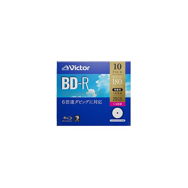 - [ビクター 録画用BD-R 25GB 1-6倍速 インクジェットプリンター対応 10枚入 VBR130RP10J1 [VBR130RP10J1]] の商品説明●保存に強く、ドライブとの優れた互換性を実現。●高品質プラスチック基板と高度な成形技術がエラー発生率を抑制。●キズ・ホコリに強く、指紋もキレイに拭き取れる 強力ハードコート。●対応インクジェットプリンタでレーベル印刷可能。[ビクター 録画用BD-R 25GB 1-6倍速 インクジェットプリンター対応 10枚入 VBR130RP10J1 [VBR130RP10J1]]のスペック●用途:録画用●記録容量:25GB●録画時間:地上デジタル180分、BSデジタル130分●記録回数:1回(追記型)●記録速度:1-6倍速●レーベル対応:インクジェットプリンタ対応●レーベル仕様:ホワイト●入り数:10枚(5mmプラケース)○初期不良のみ返品可