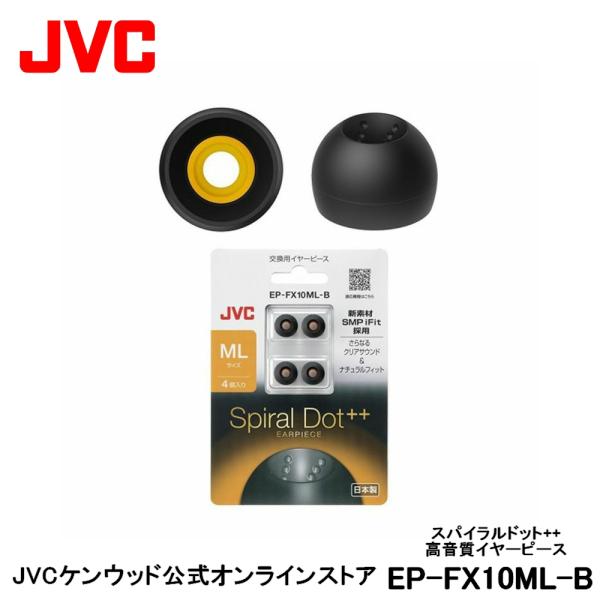 JVC 交換用 高音質イヤーピース MLサイズ ブラック 4個入り EP-FX10ML-B | 黒 4個入り 高音質 スパイラルドット++ スペア 純正品