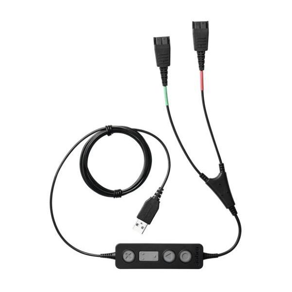 - Jabra LINK 265 USB/QD Y コードは 2 台の Jabra Quick Disconnect (QD) ヘッドセットを 1 台の PC に接続し、スーパーバイザーは自分の音声をミュートにしておいたり、会話に参加することができます。
