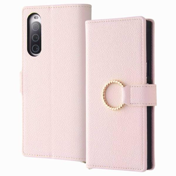 Xperia 10 V 耐衝撃 手帳型レザーケース KAKU Ring/ピンク