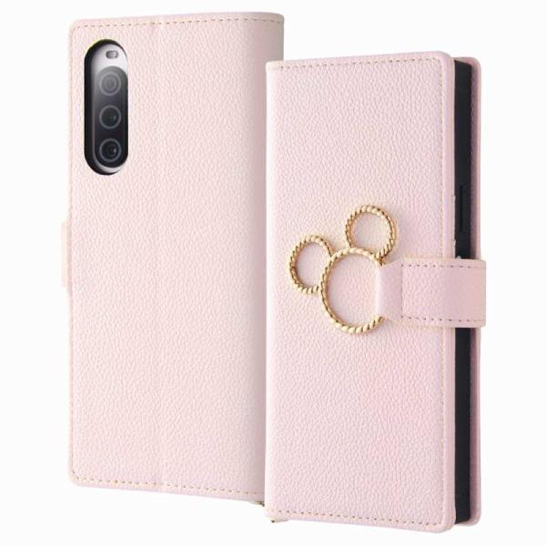 Xperia 10 V 『ディズニーキャラクター』/耐衝撃 手帳型レザーケース KAKU Ring/ミッキー_ミツマル/ピンク
