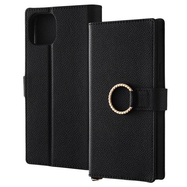 ingrem イングレム iPhone 15 Plus 耐衝撃 手帳型レザーケース KAKU Ring ブラック IN-P43TBC10/B ネコポス送料無料