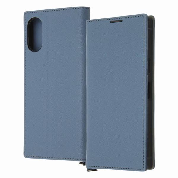 Xperia 10 VI 耐衝撃 手帳型レザーケース KAKU Durable/ブルー/ライトグレー