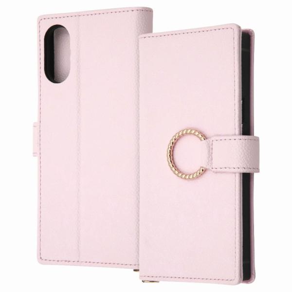 Xperia 10 VI 耐衝撃 手帳型レザーケース KAKU Ring/ピンク
