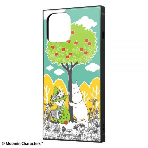 個性的な四角いフォルムと、衝撃に強いTPU素材の側面、薄くて軽いアクリルパネル を背面にセットした iPhone 2020 6.7inch用 耐衝撃ケース KAKUハイブリッド。端末側面保護、衝撃吸収エアクッション付。背面パネルには『ムーミン』のデザインがプリントされ、スマートフォンを鮮やかに彩ります。キャラクター名: ムーミン (ムーミントロール ) / スナフキン