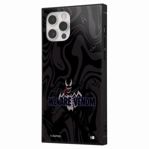 個性的な四角いフォルムと、衝撃に強いTPU素材の側面、薄くて軽く透明度の高いPCパネル を背面にセットした iPhone 12 / 12 Pro 用 耐衝撃ケース KAKUハイブリッド。端末側面保護、衝撃吸収エアクッション付。背面パネルには『ヴェノム』のデザインがプリントされ、スマートフォンを鮮やかに彩ります。