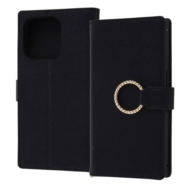 ingrem イングレム iPhone 14 Pro 耐衝撃 手帳型レザーケース KAKU Ring ブラック IN-P37TBC10/B ネコポス送料無料