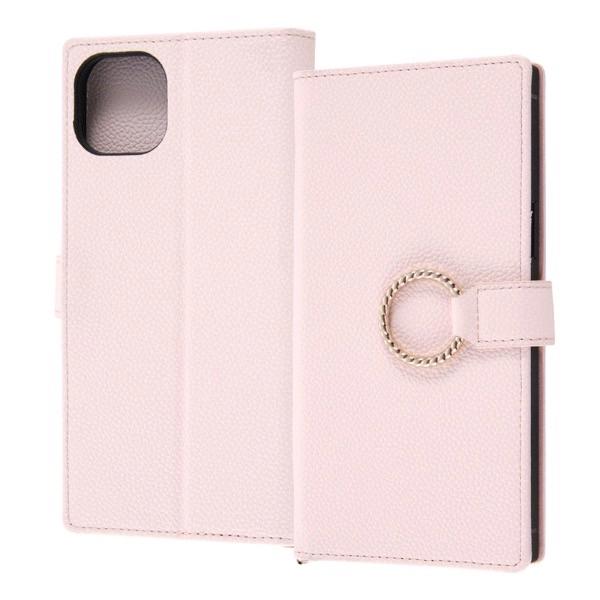 ingrem イングレム iPhone 14 Plus 耐衝撃 手帳型レザーケース KAKU Ring ピンク IN-P38TBC10/P ネコポス送料無料