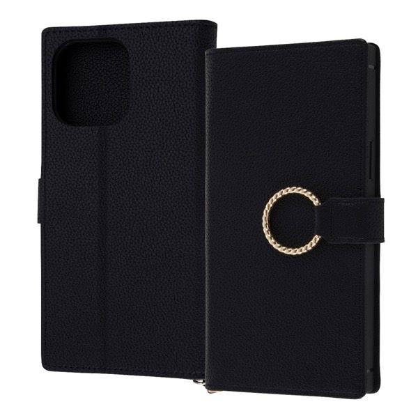 ingrem イングレム iPhone 14 Pro Max 耐衝撃 手帳型レザーケース KAKU Ring ブラック IN-P39TBC10/B ネコポス送料無料