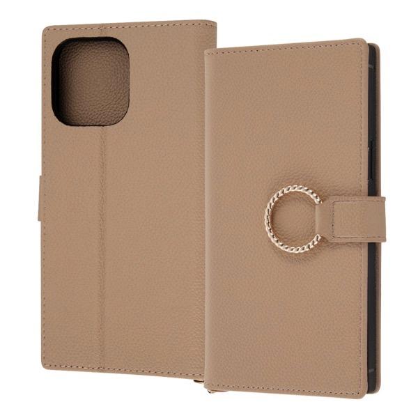ingrem イングレム iPhone 14 Pro Max 耐衝撃 手帳型レザーケース KAKU Ring モカ IN-P39TBC10/M ネコポス送料無料