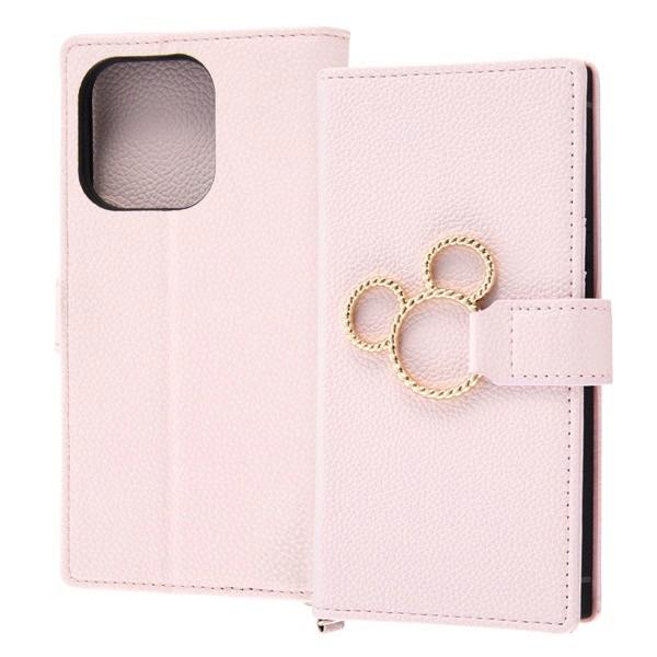 ingrem イングレム iPhone 14 Pro ディズニーキャラクター 耐衝撃 手帳型レザーケース KAKU Ring ミッキー ミツマル/ピンク ネコポス送料無料