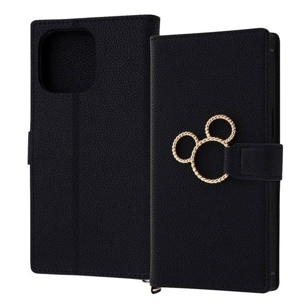 ingrem イングレム iPhone 14 Pro Max ディズニーキャラクター 耐衝撃 手帳型レザーケース KAKU Ring ミッキー ミツマル/ブラック ネコポス送料無料