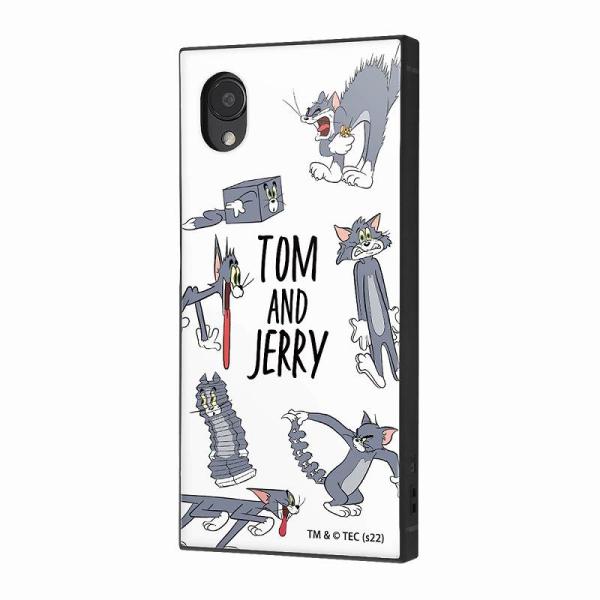 TOM AND JERRY and all related characters and elements (C) & (TM) Turner Entertainment Co. (s22) 個性的な四角いフォルムと、衝撃に強いTPU素材の側面、薄くて軽く透明度の高いPCパネル を背面にセットした Galaxy A23 5G 用 耐衝撃ケース KAKUハイブリッド。端末側面保護、衝撃吸収エアクッション付。背面パネルには『トムとジェリー ( トムジェリ )』のデザインがプリントされ、スマートフォンを鮮やかに彩ります。キャラクター名: トムストラップホール付 指紋認証対応 とむじぇり Tom and Jerry ねこ ネコ 総柄 面白い ファニー