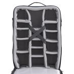 助手席での使い勝手を考慮し、フラップは縦方向にフルオープンする構造です。厚手のクッションで機材を保護するとともに、着脱自在の中仕切と内部のアクセサリーポケットにより、多くの機材を効率よく整理できます。背面にはキャリーカート用のベルトループ付です。