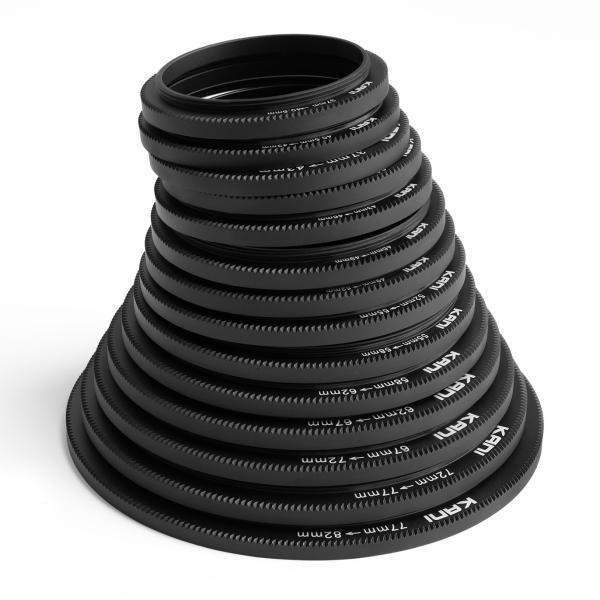 - KANI アダプターリングセット 14rings37mm~82mmまで、各種丸枠フィルターに対応するステップアップリング14個セットです。 主な仕様セット内容:37-40.5mm用/37-43mm用/39-43mm用/40.5-43mm用/43-46mm用/46-49mm用/49-52mm用/52-55mm用/55-58mm用/58-62mm用/62-67mm用/67-72mm用/72-77mm用/77-82mm用 (レンズ側-フィルター側) 各1個KANI アダプターリングセット 14rings