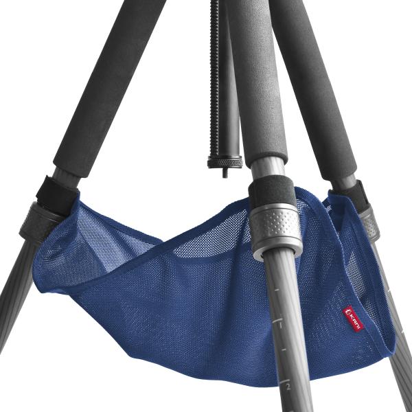 本体は薄手のメッシュ生地でできているので、ストーンバッグを三脚から外すことなくそのまま脚を畳むことができ、頻繁に移動する撮影現場にも便利。加えて軽量でかさばりせん。