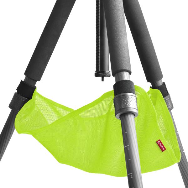 本体は薄手のメッシュ生地でできているので、ストーンバッグを三脚から外すことなくそのまま脚を畳むことができ、頻繁に移動する撮影現場にも便利。加えて軽量でかさばりせん。