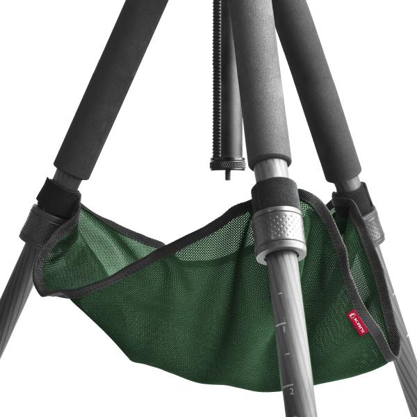 本体は薄手のメッシュ生地でできているので、ストーンバッグを三脚から外すことなくそのまま脚を畳むことができ、頻繁に移動する撮影現場にも便利。加えて軽量でかさばりせん。