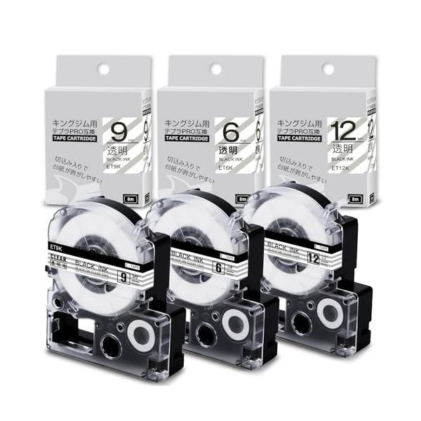 Airmall 互換品テプラテープ 透明 12mm 9mm 6mm ST12K ST9K ST6K 各1個汎用キングジム