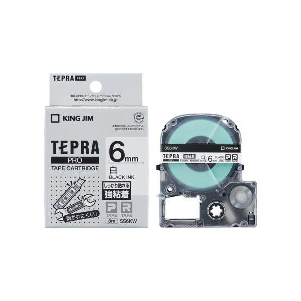 キングジム(KING JIM) テプラPRO 強粘着ラベル 白 黒文字 6mm SS6KW