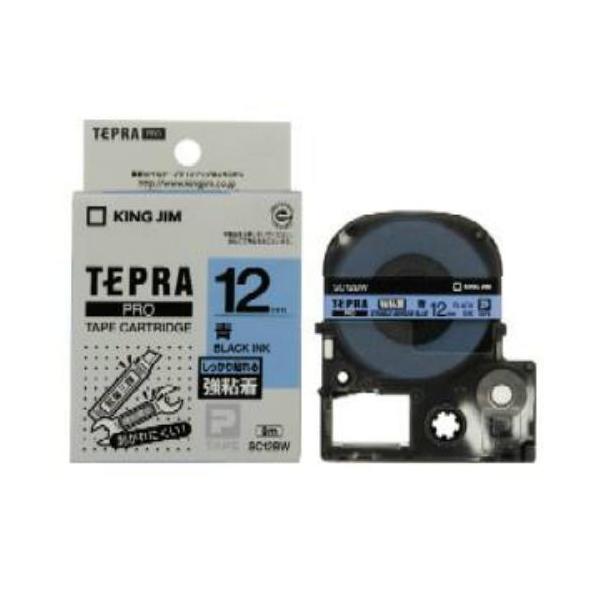 - キングジム SC12BW テプラPROテープ 強粘着タイプ青/黒文字 52