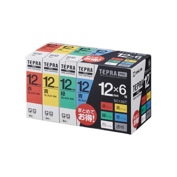 キングジム(KING JIM) テプラPRO ベーシックパック 6種セット 黒文字 12mm SC126T