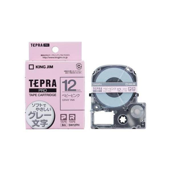 キングジム(KING JIM) テプラPRO カラーラベル ソフト ベイビーピンク グレー文字 12mm SW12PH