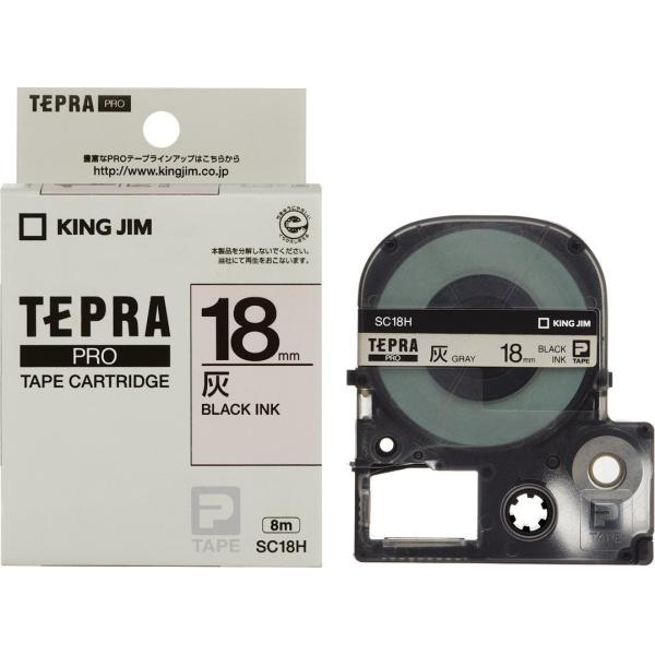 テプラPRO テープカートリッジ SC18H 灰色ラベル黒文字 18mm キングジム