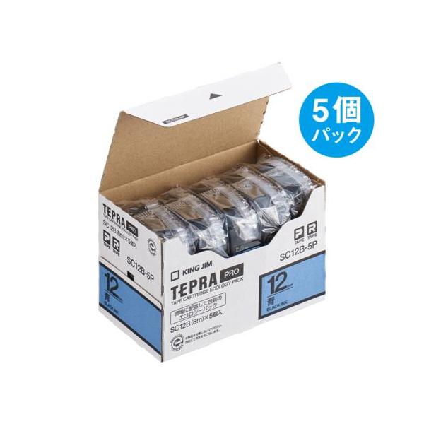 キングジム(KING JIM) テプラPRO 5個入 カラーラベル パステル 青 黒文字 12mm SC12B-5P