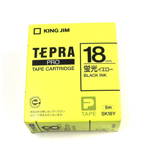 キングジム テプラプロ用カートリッジ 蛍光色黄ラベル 18ミリ SK18Y 黒文字