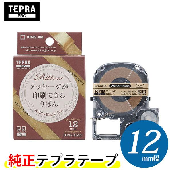キングジム「テプラ」PRO 純正テープカートリッジ りぼん SFR12ZK 12mm幅 ゴールド/黒文字 ※印刷後は、市販のハサミでカットしてください