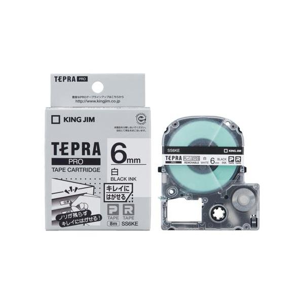 キングジム(KING JIM) テプラPRO キレイにはがせるラベル 白 黒文字 6mm SS6KE