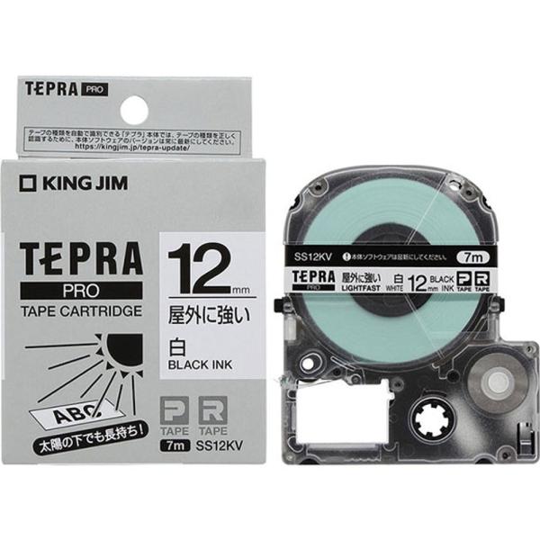 - ★紫外線に強く強粘着、屋外使用向け■メーカー:キングジム■品番:SS12KV■白テープ/黒文字■テプラPRO用テープカートリッジです(P規格、R規格)*機種により使用可能なテープ幅が異なります。 必ず適応テープ幅をご確認ください。