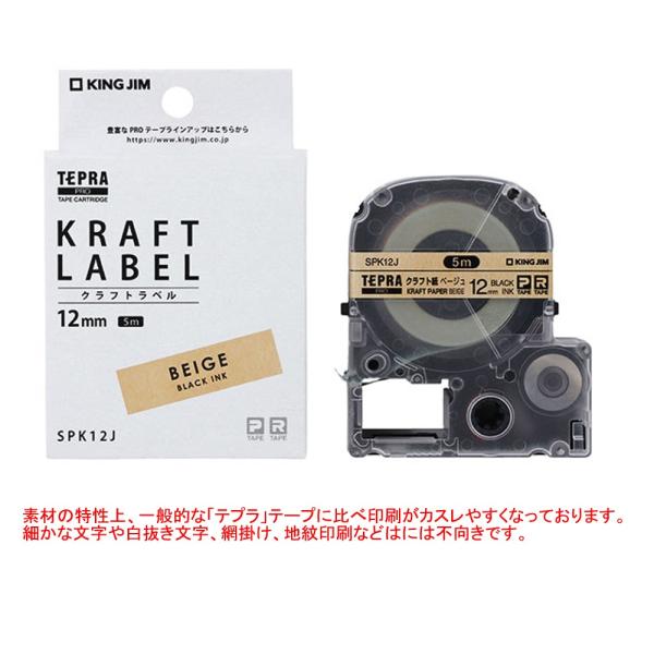 - ★テプラPRO用クラフトラベル■メーカー:キングジム■品番:SPK12J■クラフト素材ラベル/黒文字■テープ幅:12mm*商品性質上カスレが出やすいテープです■テプラPRO用テープカートリッジです(P規格、R規格)*機種により使用可能なテープ幅が異なります。 必ず適応テープ幅をご確認ください。