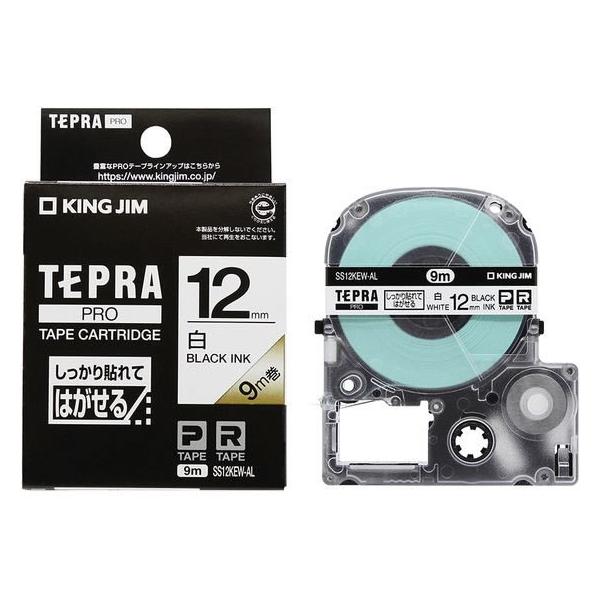 キングジム テプラ しっかり貼れてはがせる 12mm 白/黒字 白 ホワイト テプラPROテープ キングジム テプラ 事務機器
