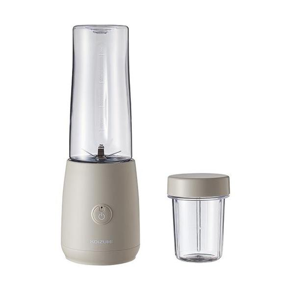 - 【返品種別A】□「返品種別」について詳しくはこちら□メーカー保証期間 1年※電気ミキサーを安全にお使いいただくために・直接刃の部分に触れると大変危険ですので、十分ご注意ください。・運転中にふたを開けたり、ミキサーコップの中に調理材料以外を入れないでください。・部品の取付・取り外し・お手入れはスイッチを切り、電源プラグを抜いてから行ってください。使用時以外は電源プラグをコンセントから抜いてください。・子供や乳幼児の手の届く所で使わないでください。ボトルはそのまま持ち運びOK。コードレスミルミキサー。◆USB充電式本体側USB Type C対応。◆キャップ付属タンブラーボトルで持ち運び。※ボトルに調理物を入れて長時間持ち歩かないでください。 また、冷蔵庫で保管しないでください。変形・変色の原因になります。◆ミキサー&ミルミキサーで粉末ドリンクづくり。ミルで細かな粉末も。◆簡単3ステップ1.材料を準備し、ミキサーボトルに入れ蓋を閉める2.スイッチを押す3.完成! シンプル操作で簡単にドリンクづくり。■ 仕 様 ■カラー:ベージュ容量:[ミキサー]0.4L [ミル]0.085L本体サイズ(約): [ミキサー使用時]幅10.0×奥行10.0×高さ27.5cm [ミル使用時]幅10.0×奥行10.0×高さ19.5cm重量(約):0.66kg(0.4Lボトル取付時)消費電力:5W(充電時)定格時間(ミキサー取付時):40秒(40秒運転 1分間停止 5回まで)安全装置:-コード長(約):45cmカッター:ステンレス6枚刃付属品:本体、ミキサーボトル、ミルボトル、キャップ、ピック、ボトル台、USBケーブル、取扱説明書(保証書付)[KMZ0402C]コイズミ調理家電>調理家電>ジューサーミキサー・カッター・プロセッサー>ミキサー