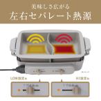 - 商品説明★ 左右でそれぞれ温度調節が可能(約60℃〜 250℃)★ 仕切り深鍋・平プレート たこ焼きプレート付属★ テーブルで使いやすいすっきりデザイン★ お手入れ簡単フッ素コーティング加工(表面)スペック* 電源:AC100V 50/60Hz* 消費電力:1200W(左:600W、右:600W)* 安全装置:温度ヒューズ* 温度調節:保温 60℃〜250℃* ヒーター:シーズヒーター* コードの長さ:2.5m* 本体サイズ:約415(W)×265(D)×180(H)mm(平面プレート* フタ装着時)* 質量:約2.8kg(平面プレート* フタ装着時)