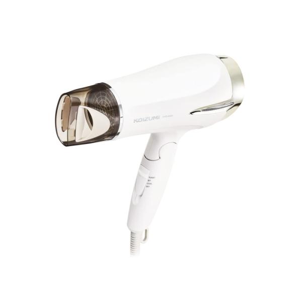 - コイズミ KHD9330W マイナスイオンヘアドライヤー コイズミビューティ ホワイト発売日:2021年11月1日●大風量1.9立米/分、マイナスイオン機能●パワーアップノズルで風速・風圧アップ●軽量タイプ約480g【仕様】本体(W×D×H):235×96×215mm重量:480g原産国:中国電源:AC100V 50/60Hz共用消費電力:1200W温風温度・TURBO:約80℃ ・SET:約65℃風量:1.9立米/分メインスイッチ:TURBO-SET-COOL-OFFコードの長さ:1.7m