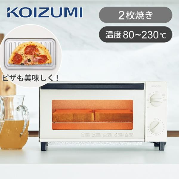 - \コンパクトサイズ/おしゃれなオーブントースター オーブントースター商品仕様 電源 AC100V 50/60Hz共用 サイズ 本体:約36.0(幅)×23.6(奥行)×19.4(高さ)cm庫内:約26.0(幅)×17.5(奥行)×8.5(高さ)cm 本体重量 約2.5kg 消費電力 1000W コード長 約1.2m トースト枚数 1〜2枚 温度調節 約80~230℃ タイマー 15分計タイマー(報知音つき) 付属品 トレー、取扱説明書(保証書付) 本体保証 ご購入日から1年間 メーカー名 KOIZUMI(コイズミ) 機種変更日・理由 2025年10月・マイナーチェンジのためKOIZUMI(コイズミ)オーブントースター2枚焼きタイプ / ホワイト 温度調節で、自分好みに。 食材や、お好みの焼き加減にあわせて毎日を美味しく。 ロールパンやクロワッサンも焦がさない、温度調節が可能なハイパワー1000Wのオーブントースターです。 前機種のネイビーからおしゃれなホワイトカラーにリニューアルしました。 Point.01 トースト2枚焼き 角型パン2枚を同時に焼けるひろびろ庫内です。 Point.02 トレーが付属 14cmのピザも焼けるトレーが付属。くずの出やすい食材も、トレーを使えばお手入れかんたん。 グラタンやクッキーを焼くときにもお使いいただけます。 Point.03 ハイパワー1000W 幅広い温度調節約80℃~230℃で、食材や、お好みの焼き加減にあわせて調節可能。 15分タイマー最大15分までのタイマー設定。短時間の温めから、グラタン調理まで。 ロールパンやクロワッサンもOK、調理の幅が広がります。 【設定例】 ■トースト 2枚 『230℃ - 2.5~3分』 ■バターロール4個 『100℃ - 2~3分』 ■冷凍ピザ14cm 『180℃ - 7~9分』 ■フライ 2個 『160℃ - 7~10分』 Point.04 お手入れかんたん 着脱式の焼き網・くず受け皿焼き網は簡単に取り外しできます。 くず受け皿はスライド式で、サッと取り外してお手入れ簡単です。 焼き網、トレー、くず受け皿は水洗いで清潔に。 Point.05 安心のメーカー保証 本体サイズ ★お気に入りに登録