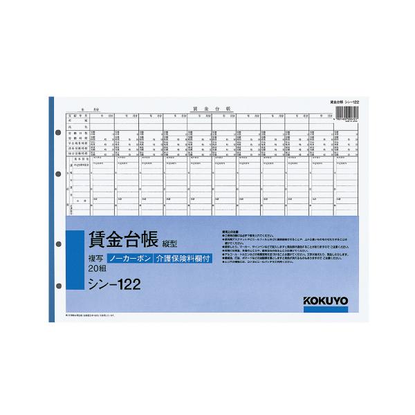 コクヨ 賃金台帳 縦型 B4 4穴 ノーカーボン20組 シン-122