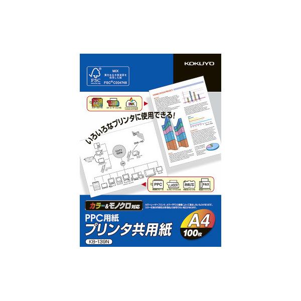 A4コピー用紙 コクヨ プリンタ共用紙FSC認証 A4 100枚 KB-139N