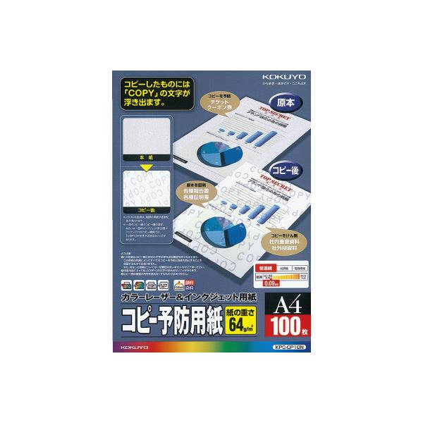 A4コピー用紙 コクヨ LBP&IJP用コピー予防用紙 A4 100枚 KPC-CP10N