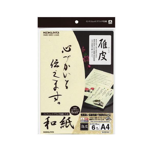 コクヨ インクジェットプリンタ用紙 和紙 雁皮柄 A4 6枚入 KJ-W110-8