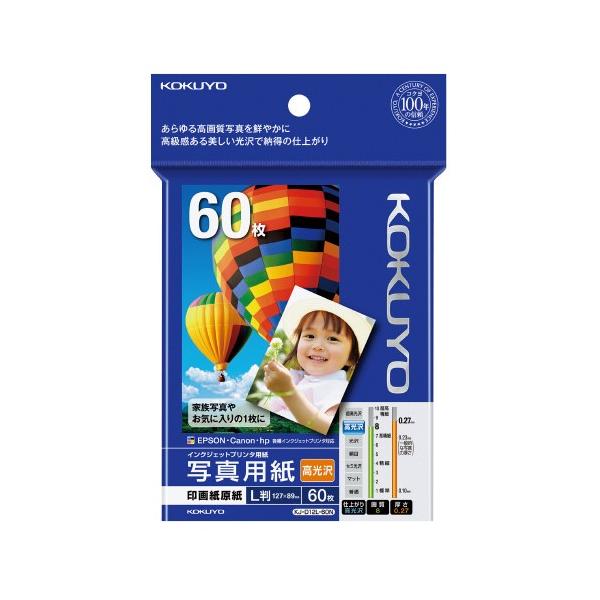 コクヨ インクジェットプリンタ用紙 写真用紙 高光沢 L判 60枚 KJ-D12L-60N