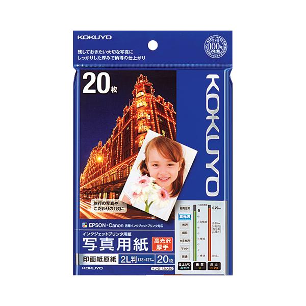 コクヨ インクジェットプリンタ用紙 写真用紙 高光沢・厚手 2L判 20枚 KJ-D112L-20