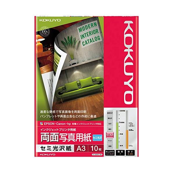 コクヨ インクジェット 両面写真用紙 セミ光沢 A3 10枚 KJ-J23A3-10N