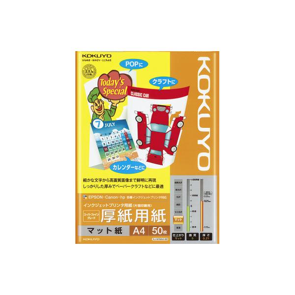 コクヨ KOKUYO インクジェットプリンタ用紙 厚紙用紙 スーパーファイングレード A4 50枚 KJ-M15A4-50