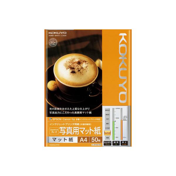 コクヨ インクジェットプリンタ用紙 写真用マット紙 A4 50枚 KJ-M14A4-50