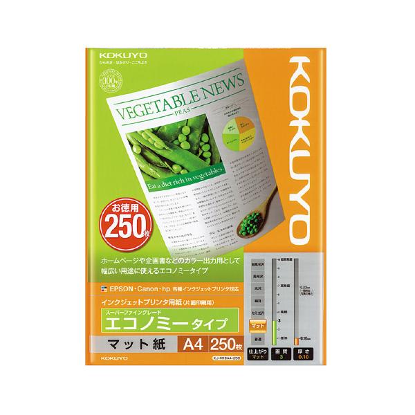 コクヨ インクジェットプリンタ用紙 エコノミー スーパーファイングレード A4 250枚 KJ-M18A4-250